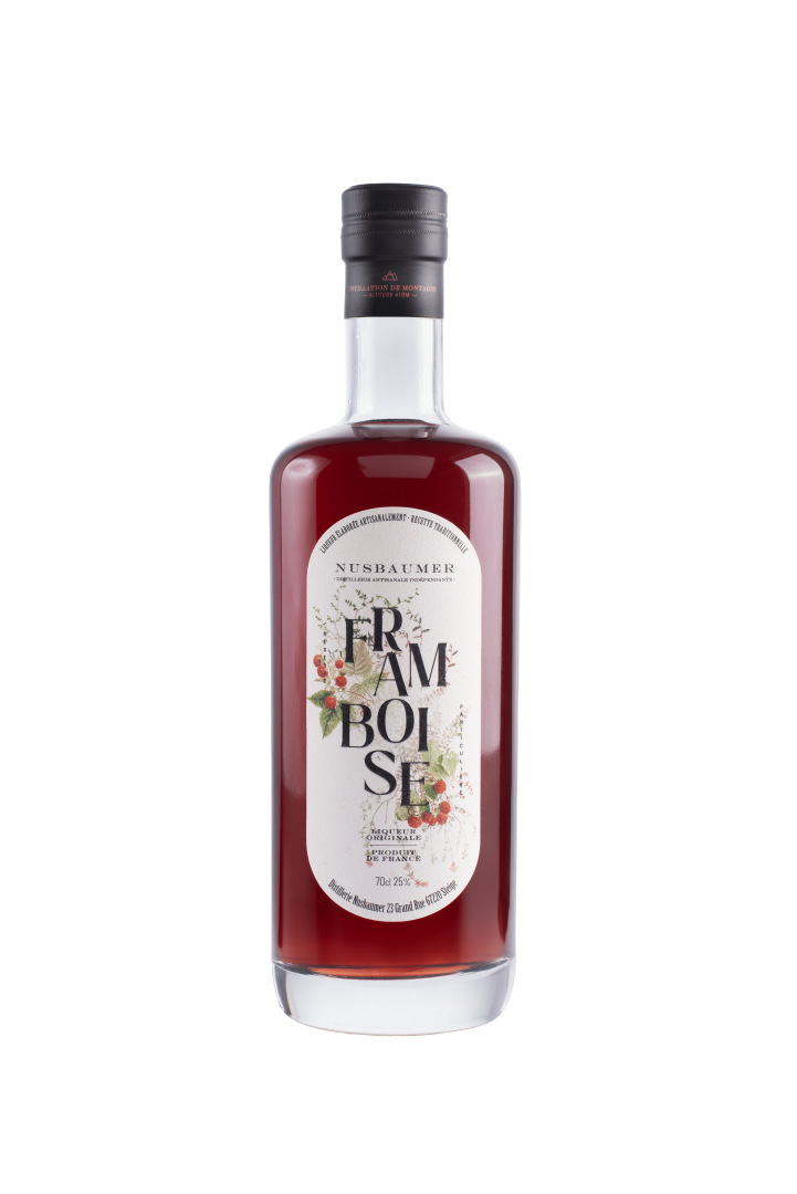 Cette liqueur est élaborée par macération d'une purée de framboises dans notre eau-de-vie de Framboise classique. Elle est ensuite réduite au degré grâce à l'eau de source de Steige, puis ajustée avec un sirop de sucre avant filtration à froid.